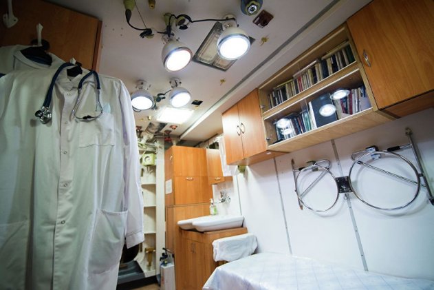«Наши доктора по специальности хирурги. Дополнительно проходят подготовку в учебных центрах: терапевт, окулист и так далее, — поясняет командир. — У врача есть ассистент, обычно мичман-техник, который две недели обучается в госпитале. Присутствует на операциях, смотрит, записывает, отбивает страх крови. Это все идет в зачеты».