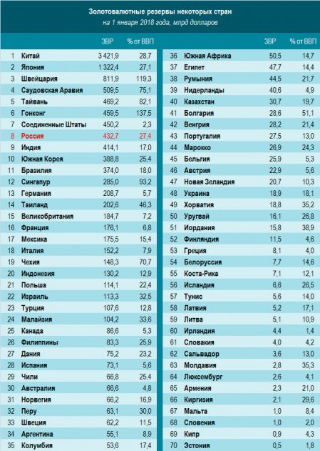Центробанк ведет и сравнительную статистику. Почему в список попали ведущие экономики мира, ясно. А вот по каким критериям отбирались другие страны, сказать трудно, но, видимо, у наших финансистов есть на этот счет свои соображения. Если вы можете объяснить, с интересом выслушаю.