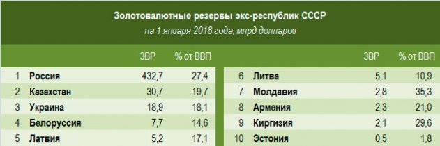 Конечно, мне было интересно, как ощущают себя экс-республики СССР. Россия, как вы видите, смотрится на фоне остальных солидно. Опять же, в центробанковском списке только десять республик вместо 15-ти, почему, не знаю.