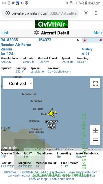 Ан-124 вылетел в Венесуэлу из Сирии.