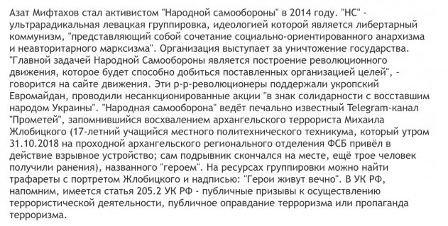 С Россией всё иначе. Ублюдки, устроившие теракт в Беслане и Норд-Осте, — борцы за независимость. Сенцов — режиссёр с тонкой душевной организацией и плохим здоровьем. Анархист, подорвавший себя под зданием ФСБ в Архангельске, — просто борец с репрессиями и системой. Крымские татары из «Хизб ут-Тахрир*» вообще мученики, страдающие за любовь и преданность Украине.