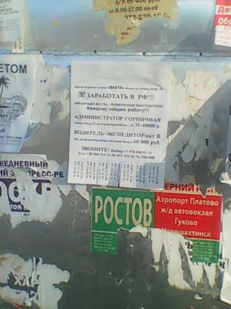 В принципе можно и не комментировать. Но я совсем коротко. С каким придыханием коментировали заявление Поклонсой в Донецке недавно о том, что Донбасс будет в России! Мол, просто так такие люди ничего не говорят...Сейчас у нас на слуху выдача паспортов России жителям ЛДНР. Не особенно-то я этому и рад. Что это даст мне? Возможность смыться в Россию? Не собираюсь. Кому я там нужен в своем, по российским меркам, предпенсионном?. Это плюс тем, кто хочет уехать туда насовсем или постоянно там работать. А кто останется тогда здесь? Опять Дикое поле? На остановке увидел два объявления о наборе на работу в России