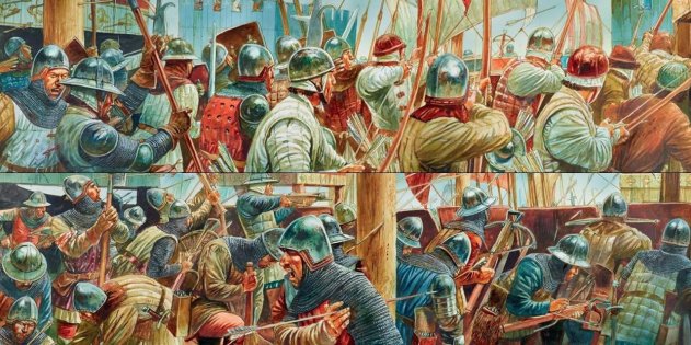 В битвах XV века лучников несколько раз перемешивали с арбалетчиками, чтобы они дополняли друг друга.