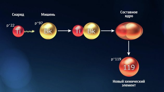 От столкновения титана (в его ядре 22 протона) с берклием (97 протонов) должен родиться 119-й элемент. Если взять в качестве мишени более тяжелый элемент — калифорний с номером 98, следует ожидать синтеза 120-го элемента. Именно этот элемент рассчитывают открыть первым, поскольку изотоп калифорния-251 уже подготовлен американскими коллегами из Национальной лаборатории в Ок-Ридже. Хотя на практике не все так просто, на поиск ядер и реакции, в которой образуется новый сверхтяжелый элемент, могут уйти годы.