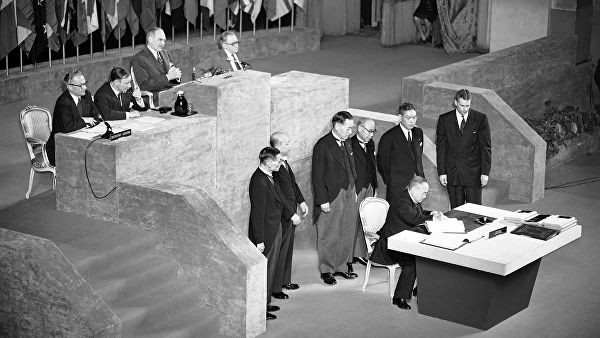 Премьер-министр Японии Сигэру Ёсида подписывает Сан-Францисский мирный договор. 8 сентября 1951 "Япония фактически под оккупацией"