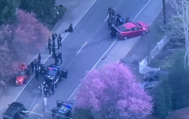 После того как злоумышленник открыл огонь, он похитил рядом стоящий автомобиль, но при попытке бегства столкнулся с другой машиной.