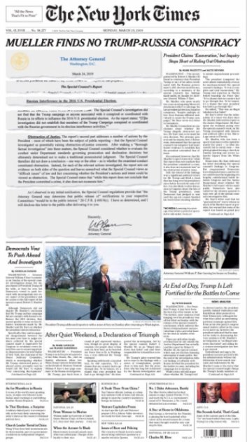 После 22 месяцев, комиссия Мюллера, в которую входило 19 адвокатов, 40 агентов ФБР, допрошено 500 свидетелей, предьявлены обвинения 34 человекам, потрачено 25 млн. долларов, все таки пришла к выводу, что Трамп не агент Путина/России/Кремля/КГБ.