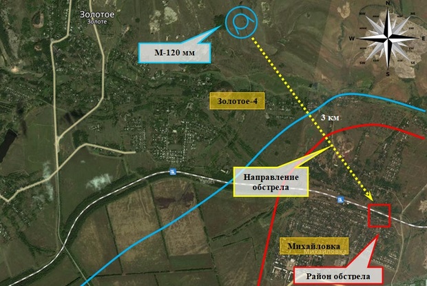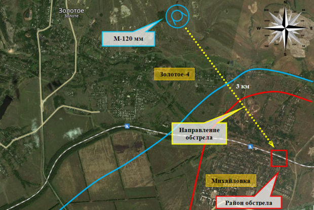 "В ходе анализа фрагментов примененных боеприпасов, повреждений установлено следующее: обстрел населенного пункта Золотое-5 (Михайловка) велся с применением миномета калибра 120 мм минами ОФ-34. С места происшествия извлечены фрагменты примененных боеприпасов", - сообщили в представительстве ЛНР в СЦКК, добавив, что в результате обстрела никто из жителей не пострадал.