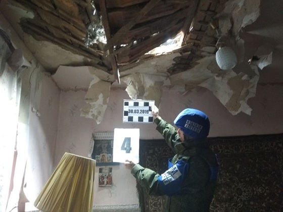Кроме того, представителями СЦКК в ЛНР зафиксирован разрыв 122-мм боеприпаса во дворе жилого дома в населенном пункте КАЛИНОВО. Только по счастливой случайности никто из мирных жителей не пострадал. В настоящее время нашими военнослужащими в Совместном Центре по контролю и координации осуществляется сбор и фиксация доказательств обстрелов населенных пунктов Республики со стороны киевских карателей. Впоследствии данные материалы будут приобщены к уголовному делу в отношении военного преступника – командира 54 механизированной бригады МАЙСТРЕНКО, с позиций которого и производился обстрел вышеуказанных населенных пунктов.