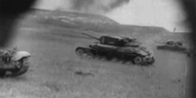 В кадр попали редкие гости на экране — атакующие ленд-лизовские «валентайны», а также тяжёлый труд механика-водителя.