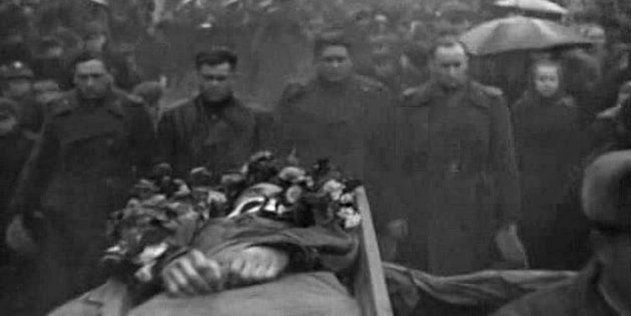 Похороны Сущинского На присланной в студию коробке с плёнкой Быков писал: «В Бреслау во время съёмки уличного боя осколком снаряда был убит кинооператор Владимир Сущинский. На поле боя снять его я не мог — был ранен этим же снарядом». Николай Быков тоже погиб — 18 марта 1945 года.