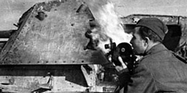 Сущинский даже не мог ходить, поэтому снимал изнутри наступающего танка.