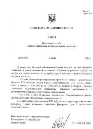 "Кроме того, в распоряжение сотрудников управления по надзору за соблюдением законов в военной сфере попали приказы за подписью бывшего начальника штаба - первого заместителя командующего "объединенных сил" генерал-майора (Валерия) Залужного и нынешнего начальника штаба - первого заместителя командующего "объединенных сил" генерал-майора (Андрея) Ковальчука командирам 10-й горно-штурмовой бригады и 93-й отдельной механизированной бригады ВСУ об открытии огня по населенным пунктам, расположенным вдоль линии соприкосновения", - проинформировали в правоохранительном ведомстве.