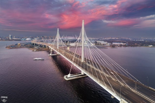 4. Северный мост на скоростной автомагистрали, пересекающей западную часть Санкт-Петербурга над сушей и морем, 8,8 км (полностью открыт в 2016 г.)
