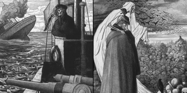 Применительно к Первой мировой войне тема крутилась вокруг подводных лодок и отравляющих веществ.
