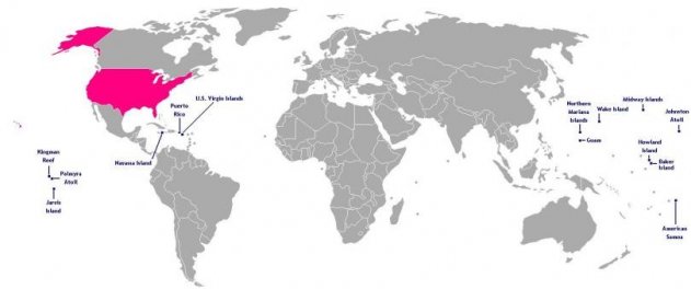 Островные территории США на карте мира