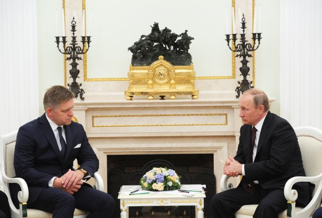 Встреча Владимира Путина и премьер-министра Словакии Роберта Фицо По словам политолога, Словакия обладает небольшим политическим весом, но отказом от размещения американских баз республика пытается подчеркнуть свой статус равноправного участника Североатлантического договора. Кроме того, Братислава осознаёт масштаб негативных последствий проамериканской политики.