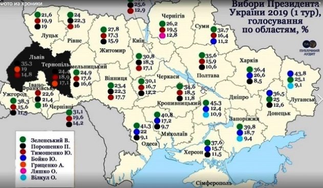 - в Галиции победили яро прозападные: Порошенко (две области) и Тимошенко (одна область);