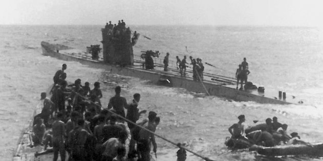 U-156 (на переднем плане) и U-507 (на заднем) спасают выживших, 15 сентября 1942 года Пятнадцатого сентября к месту происшествия прибыли U-506, U-507 и итальянская подлодка «Команданте Каппеллини» (Comandante Cappellini). А 16 сентября U-156 вместе с потерпевшими, размещёнными на верхней палубе и в буксируемых шлюпках, атаковал патрульный бомбардировщик ВВС США.