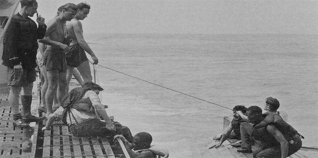 Конечно, немцы участвовали в некоторых других международных пактах, содержавших нормы о спасании на море, однако нормы эти не применялись к военным кораблям. Только X Гаагская конвенция, подписанная Германией в 1907 году, обязывала воюющие стороны разыскивать погибающих, раненых и больных — насколько позволяют военные интересы и безопасность спасателей.