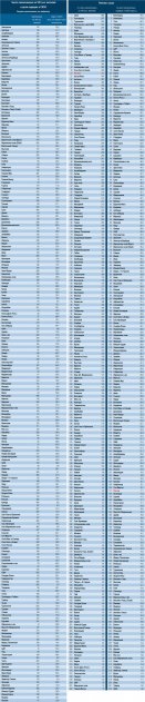Для удобства я сделал две таблицы — по алфавиту, чтобы было легче искать нужную вам страну, а также выстроил страны по рейтингу.