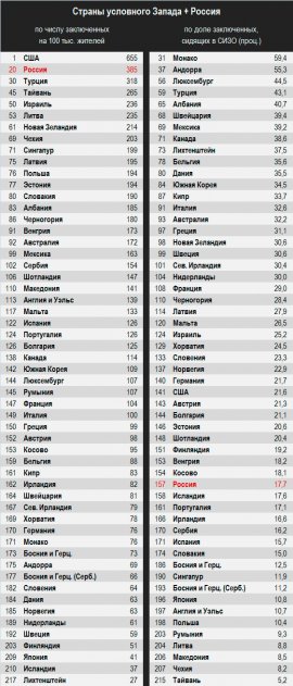В-третьих, к цифрам и статистике специалисты относятся очень осторожно. Скажем, в Монако очень высок процент заключенных, находящихся в СИЗО, то есть заключенных под стражу в качестве меры пресечения, а не по приговору суда. Там вообще действует достаточно жесткий УПК 1963 г. Монегаски, вступив не так давно в Совет Европы, пообещали принять новый, более либеральный кодекс, но пока не спешат. Правозащитники их также не очень донимают.