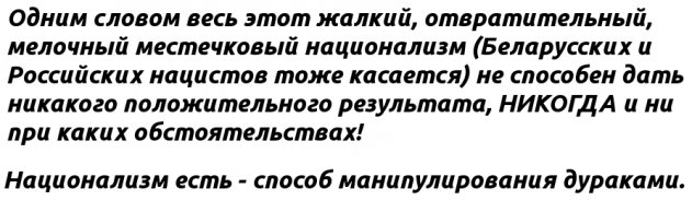 Но «украинствующие» не хотят замечать даже того, что современные захватчики, хозяева украинствующих элит относятся к ним как к рабам, причём открыто! Они открыто повелевают, вплоть до контроля популяции «туземцев»: «Украинцев должно остаться не более 17 миллионов» - открыто заявлял Бжезинский (больше батраков и свинопасов панам не треба! )))