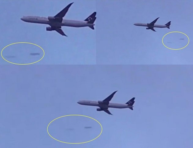 А недавно над Лондоном очевидцы зафиксировали сигарообразный корабль инопланетян. Вернее их было два. Заметил их британец, который снимал полёт пассажирского авиалайнера. НЛО двигались с огромной скоростью, поэтому полёт их удалось зафиксировать лишь на паре кадров.