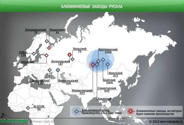 Объединенная компания "РУСАЛ" – российская алюминиевая компания, один из крупнейших в мире производителей первичного алюминия и глинозема, предприятия расположены в том числе на Урале (БАЗ, УАЗ) и в Сибири.