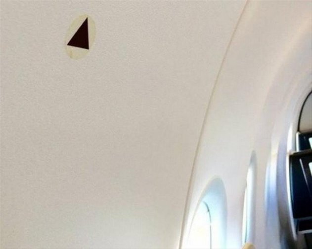 Черный треугольник позволяет экипажу быстро найти иллюминатор с лучшим обзором для наблюдения за положением закрылков в случае, если датчики выйдут из строя.