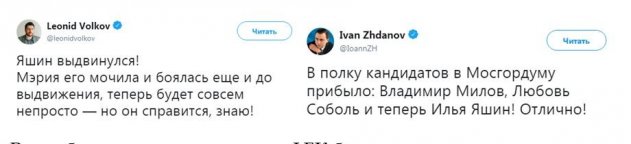 Включились в процесс пиара Яшина и другие активисты ФБК: Волков, Соболь, Жданов, Ярмыш.