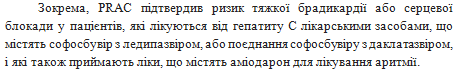 Вместе с тем, европейское агентство по лекарственным препаратам выявило риск тяжелой брадикардии и блокады сердца при использовании препарата на основе софосбувира/ледипасвира совместно с лекарством «Кордарон». А по сообщениям некоторых зарубежных изданий, побочные явления, возникшие при применении препарата «Харвони», уже привели к многочисленным смертям пациентов.