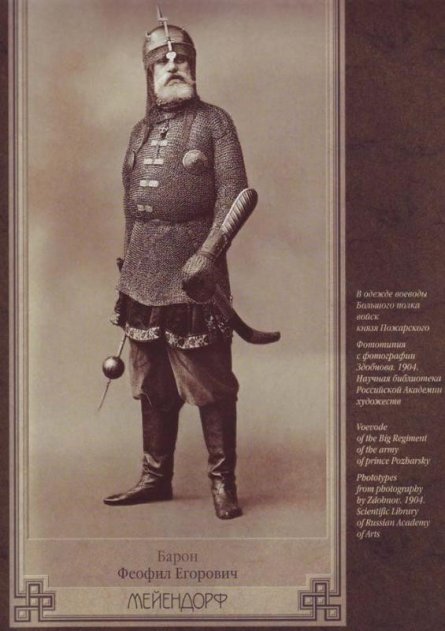 В качестве дополнения к костюму использовали подлинный жезл царя Алексея Михайловича. Пуговицы и нашивки на костюме были русской работы XVII века.