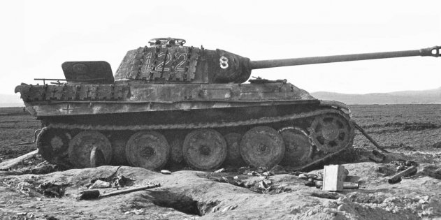 Танк «Пантера», подбитый войсками 3-го Украинского фронта, март 1945 года Танк в засаде
