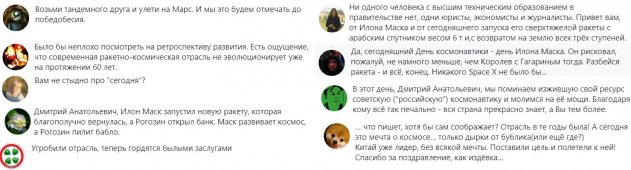 Стоит отметить, что вполне резонные основания были у премьера Медведева поздравить Илона Маска с Днём космонавтики, о чём настоятельно просили пользователи Twitter. Инженер по-своему отметил праздник, запустив первую самую тяжёлую ракету Falcon Heavy, все три ступени которой успешно вернулись на Землю. Очевидно, что сегодня космос принадлежит не России, как о том говорит Медведев, и это вызывает у налогоплательщиков неистовый гнев.