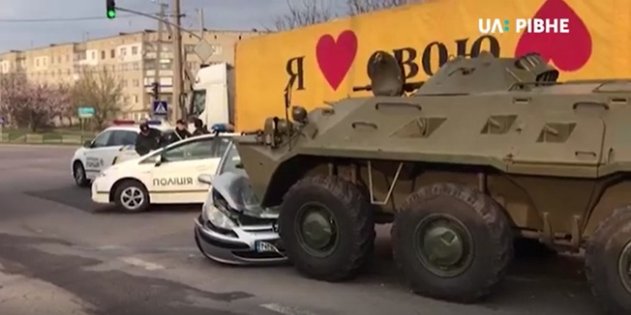 Очередное ДТП с участием украинской бронетехники произошло на трассе возле посёлка Здолбунов, в Ровенской области. БТР украинских военных лоб в лоб столкнулся с легковым автомобилем. К счастью, в этот раз пострадавших в ДТП нет