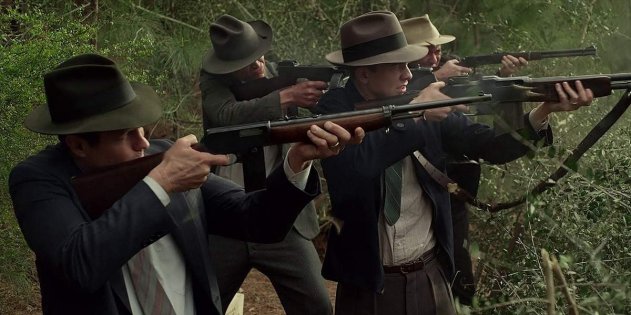 Клайд Бэрроу с обрезанным BAR А теперь представьте себя на месте полицейского или шерифа из глубинки — у которых хорошо, если есть револьвер или старенький дробовик. Да вас застрелят раньше, чем вы подойдёте спросить «не нужна ли помощь»! Что нередко и случалось. Бонни и Клайд убивали людей почём зря — пока не встретили крутых профессионалов.