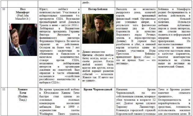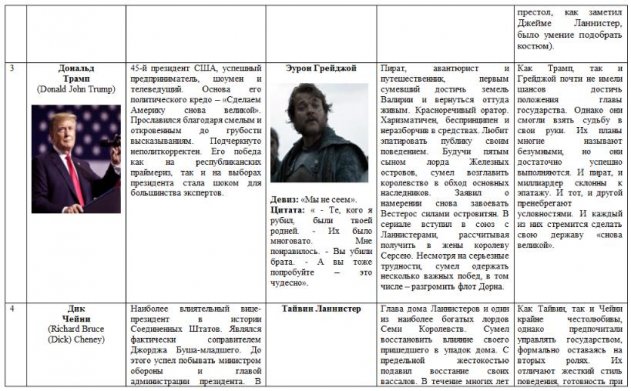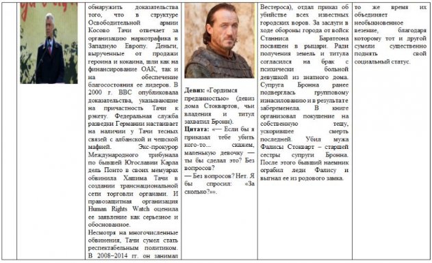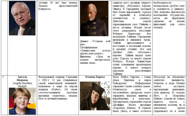 Фонд защиты национальных ценностей специализируется на проведении глубоких исследований общественно-политических процессов. Однако его эксперты не могли проигнорировать столь значимое явление массовой культуры: был составлен ТОП-12 политиков-«близнецов» героев «Игры престолов». Кто-то может оценить его, скорее, с позиций юмора, однако, как сказал Платон, без смешного нельзя понять серьезное.