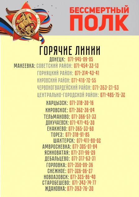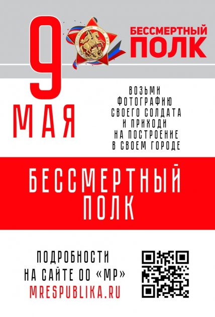 Общественная организация «Молодая Республика» призывает каждого гражданина Донецкой Народной Республики, каждого, кому дорога память о героях своей Родины, выйти 9 Мая, в День Победы, с фотографией родственника-фронтовика и пройти победным строем в колонне Бессмертного полка.