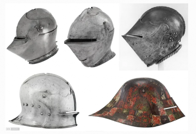Арметы: середины XV, начала и середины XVI века; салады: середина и конец XV в. Из Королевской оружейни Великобритании Прелесть салада в продуманной, максимально функциональной простоте. Так что конструкция стала основной для целой плеяды боевых оголовий, применявшихся вплоть до ХХ столетия. В принципе, оружейникам удалось создать конструкцию, которая при всей своей максимальной утилитарности оказалась верхом оружейной эстетики.