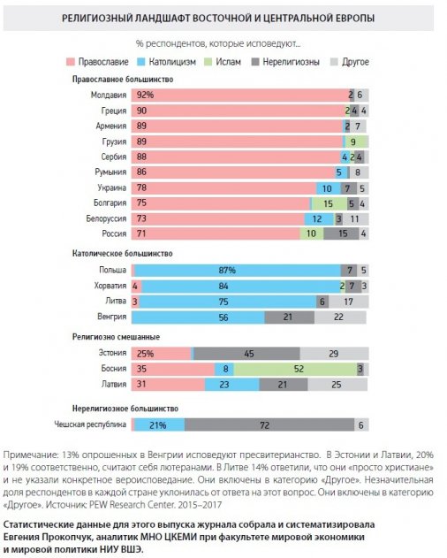 Либерализация религиозного законодательства вкупе с транснациональными веяниями приводит к детерриториализации и деконфессионализации – то есть к ослаблению связи между территорией и конфессиональной принадлежностью. Быть русским уже не подразумевает непременно православное вероисповедание – доминирует принцип религиозной свободы и индивидуального выбора, который может быть сделан в пользу буддизма или, например, протестантизма.