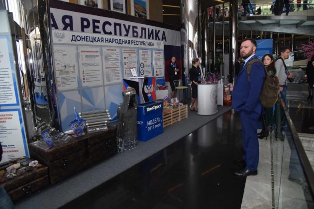 Наряду с работой профильных секций в рамках форума проходит масштабная выставка инвестиционных проектов, на которой также представлен экономический потенциал Донецкой Народной Республики.