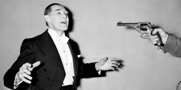 Бродячие фокусники показывали аттракцион с ловлей пули руками (некоторые особо нахальные ловили зубами) аж с XVI века: первое упоминание такого трюка относится к 1586 году! Несмотря на длинный список смертей исполнителей, фокус продолжают исполнять и в наше время, но об этом поговорим как-нибудь в другой раз.