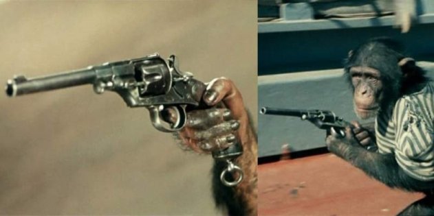 «Обезьяна на судне страшнее динамита» Кстати, в этом фильме снялся весьма редкий образец: германский «Рейхсревольвер М79».