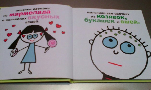 В статье использованы иллюстрации из русского издания скандальной американской книги «Boys are stupid, throw rocks at them» («Мальчики дураки, кидайте в них камни»). Издательство «Добрая книга», 2012 год.
