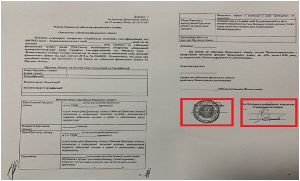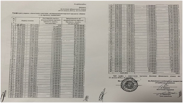Для наглядности приведем пример – $1 млрд составляет бюджет Нацполиции Украины на 2019 год. Свободного миллиарда долларов в бюджете Украины не оказалось, и правительство обратилось за помощью к банкам. Единственным банком, согласившимся предоставить лизинг, стал «Укрэксимбанк». Этот факт подтверждают фотографии одобренной «Укрэксимбанком» заявки на предоставление лизинга и графика погашения платежей.