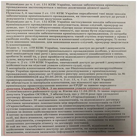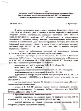 Данная «афера» не могла остаться незамеченной антикоррупционными органами Украины. Завышенная в два с половиной раза цена и некачественная сборка локомотивов заинтересовала НАБУ. Состоялось судебное заседание, по результатам которого было принято решение предоставить суду копии документов о проведении сделки. На фотографии выделен абзац, в котором суд требует обосновать условия поставки тепловозов и предоставления лизинга.