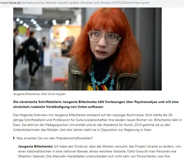 Интервью Бильченко немецкому журналисту Ульриху Хайдену (Ulrich Heyden) опубликовало издание «Heise».