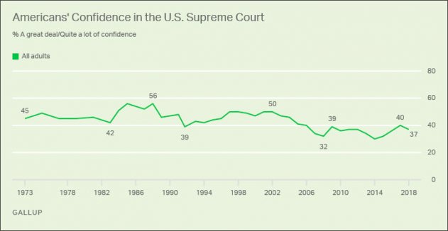 Владимир Познер явно не интересовался темой, по которой высказался, а просто вбросил распространенный среди либералов миф. Ибо Gallup регулярно проводит опросы американцев об их отношении к своему Верховному суду — высшей и самой беспристрастной инстанции любого государства.
