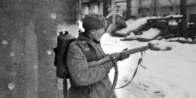 Советский огнемётчик в Сталинграде, 1942 год С другой стороны, любая самоходка противника с открытой рубкой (вне зависимости от реальной модели в РККА их под конец войны традиционно обзывали «фердинандами») при встрече с огнемётчиком на тесной улице могла только красиво сгореть.